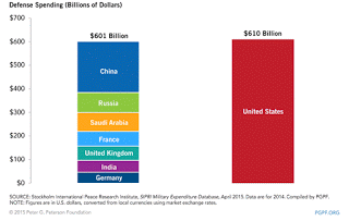All of this brings us to the ultimate point: being the clear hegemonic power (whether you like it or not) is expensive, but comes with a host of benefits. When that power (for the most part) promotes the general welfare of people around the world (human rights and such) this isn't necessarily a bad thing. The world is actually in its most peaceful period in human history (though this isn't only because of America of course) and is extremely stable even with the recent rise in tensions with Russia. Granted, the downsides are that there are still a lot of weapons which end up being used, while others are sold or traded to allied nations which increases instability (America is, after all, the largest arms dealer in the world). But the positives seem to outweigh the negatives in this case.